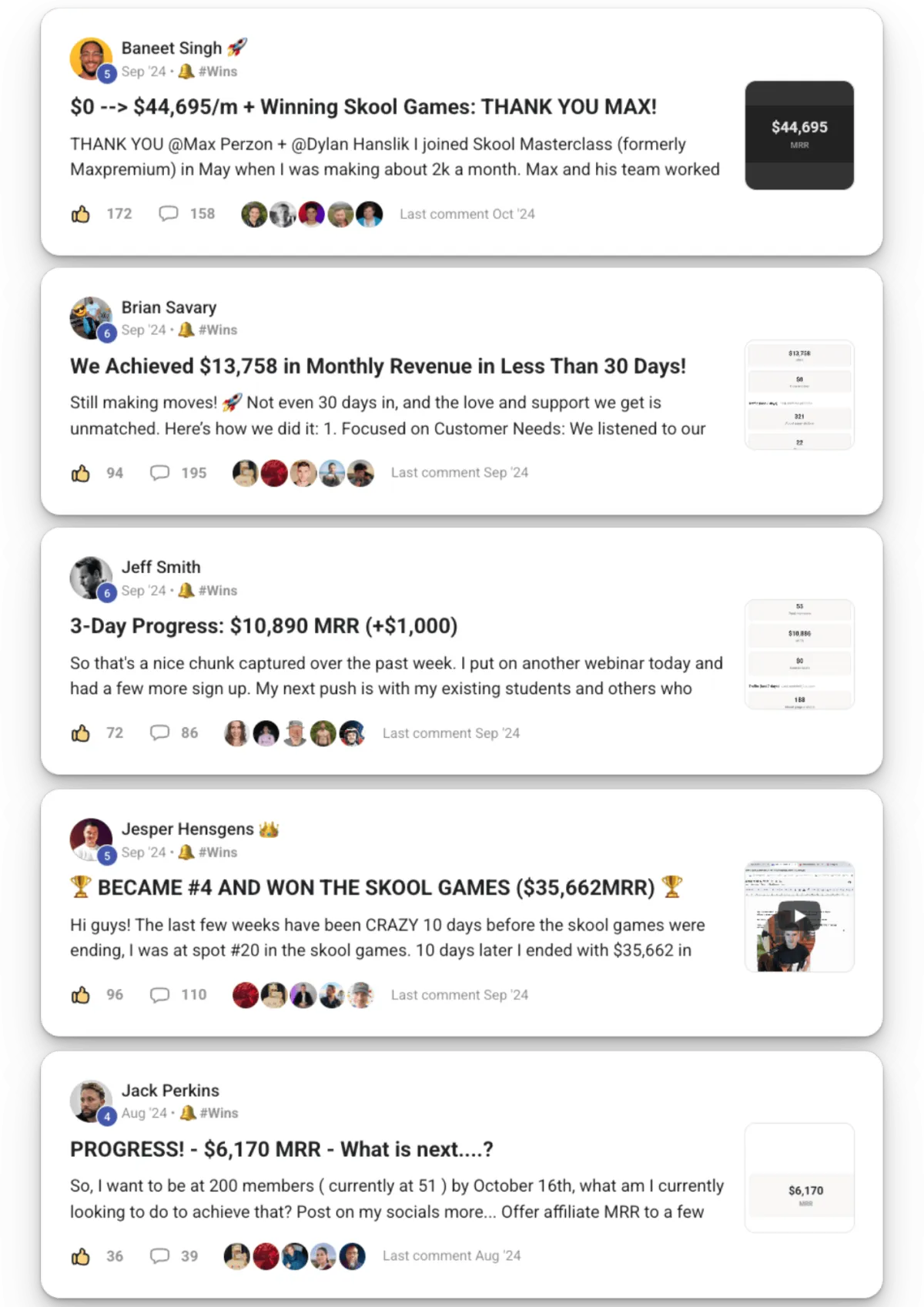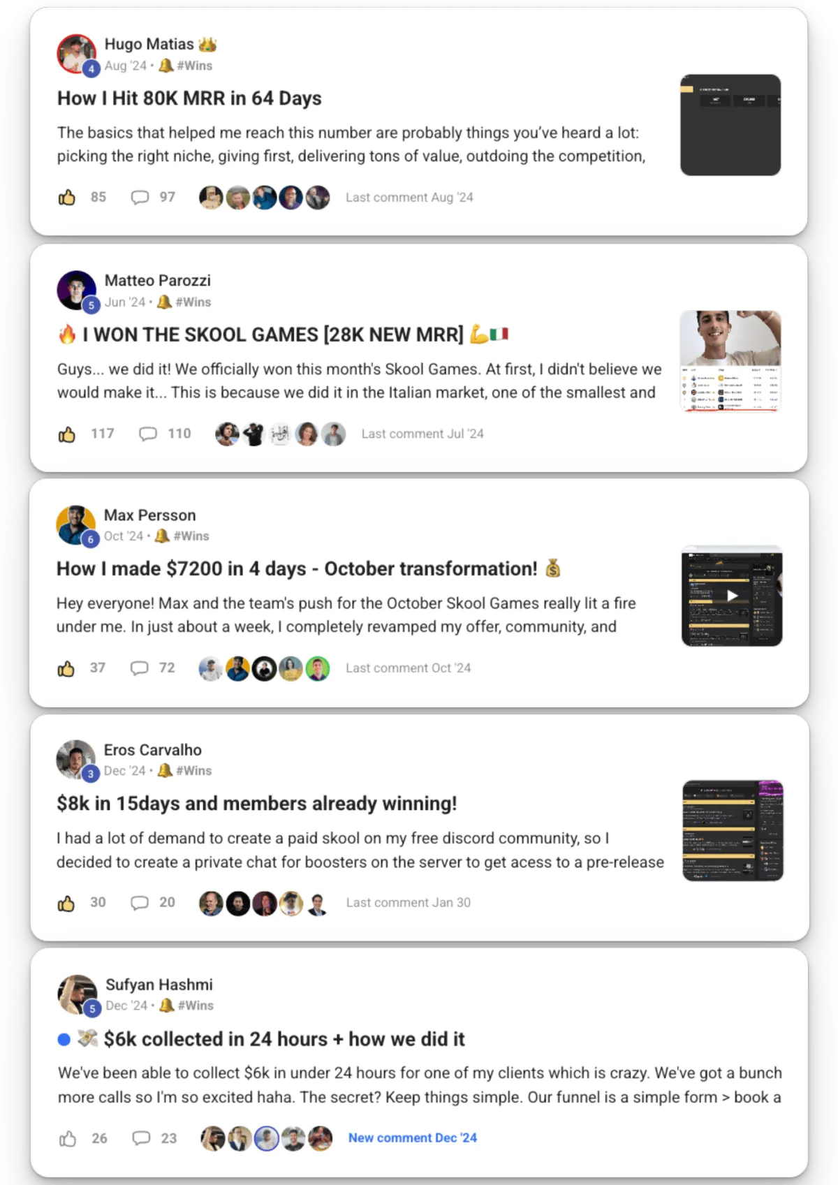 “At the beginning of December we had $0 MRR. But we had a massive goal. On the last day of the Skool Games we woke up with 15k MRR… We were #15 on the leaderboard.”